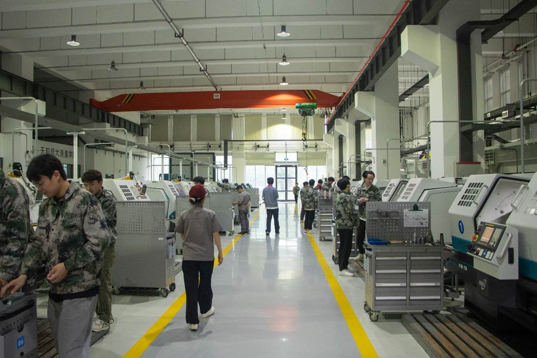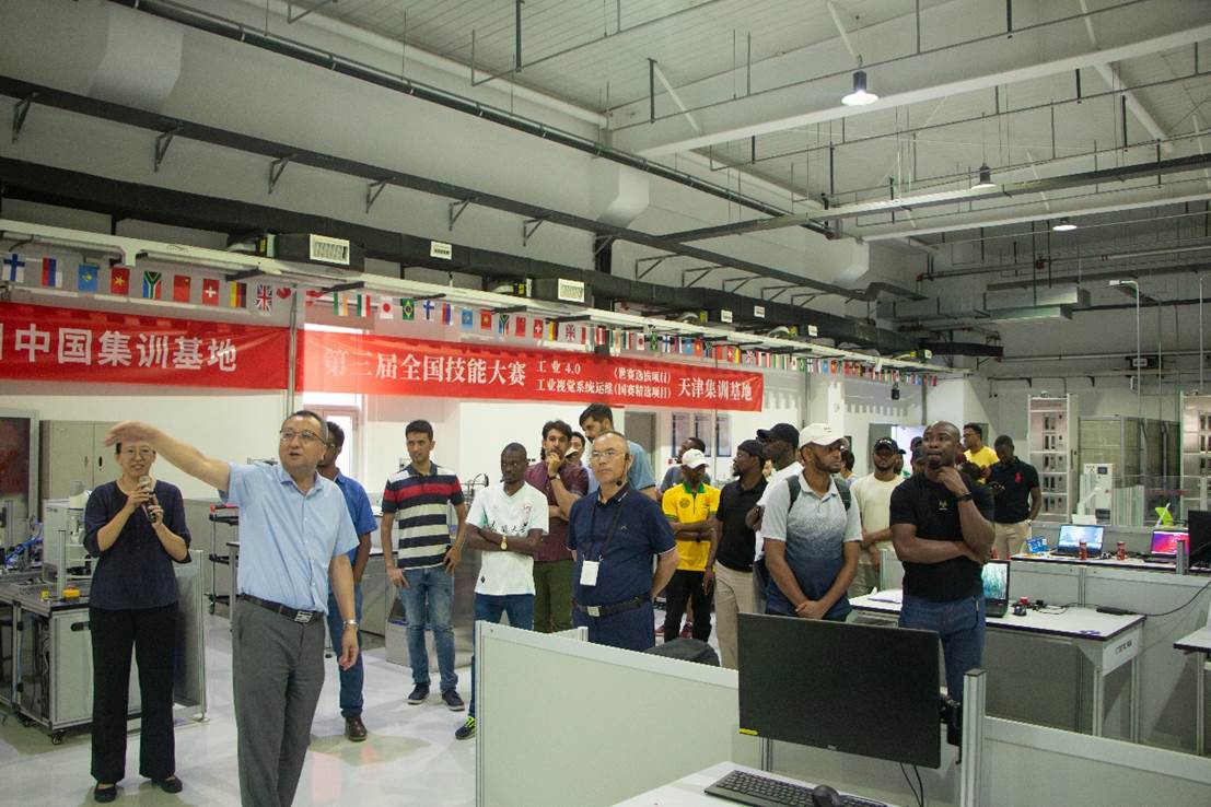 在天津职业技术师范大学,1946伟德国际留学生们走进国内同类规模最大、5万多平米的工程实训中心,在国家技能大师徐国胜的亲自引领与解说下,亲身体验智能制造、机器人操作等实践课程。